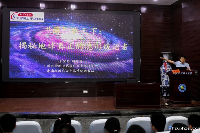 朱宝利研究员在怀化市第三中学作题为《“菌”临天下:揭秘地球真正的隐形统治者》的科普报告。他在报告中介绍,在与人类文明的交汇中,微生物扮演着双重角色,它们既是肠道健康的隐形指挥官,又是生物技术革命的灵感源泉,也曾以黑死病等瘟疫事件深刻改写人类历史。未来,从微生物燃料电池到利用蓝藻进行太空生态系统构建,这些“微观工程师”有望引领能源革命与星际生存。
