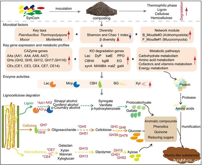 图1 合成菌群接种促进高温期木质纤维素降解的作用机制