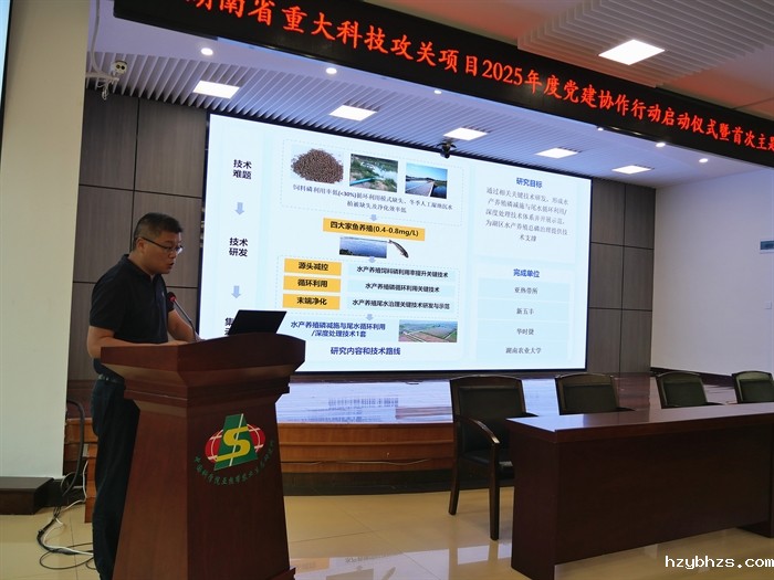 中国工程院院士、揭榜挂帅项目技术首席印遇龙研究员作重要讲话。他介绍了项目背景、重要意义、创新理念、技术手段和预期目标。他表示,在湖南省委、省政府的关心支持和项目组团队成员的团结协作下,一定会为湖南省洞庭湖总磷污染治理交上一份满意答卷,打赢这场“碧水洞庭”科技会战。